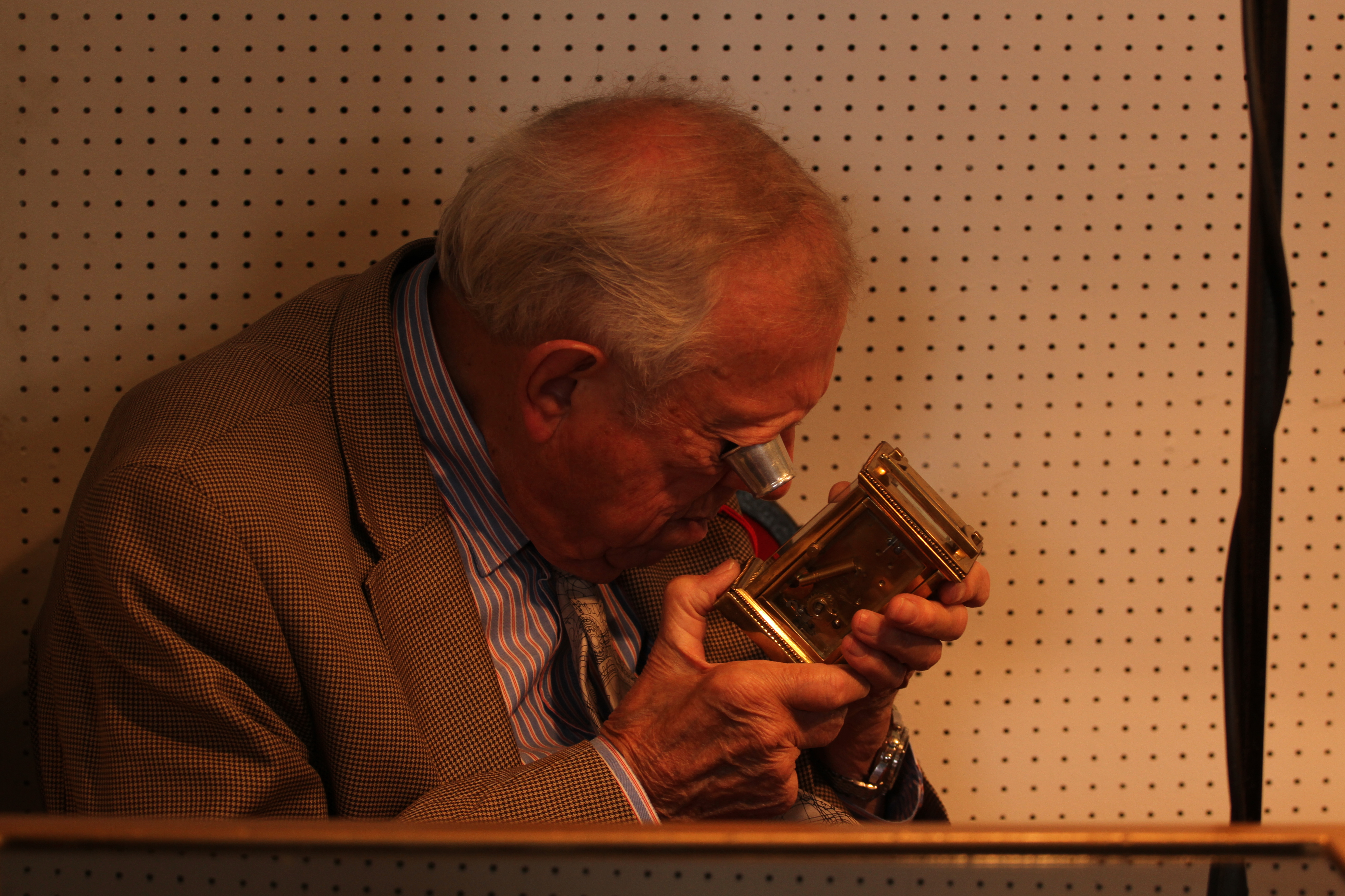 For this exercise I chose to visit a local Antiques Fair in order to capture scenes of action around the stalls.  As it happens when I arrived there was little activity and dealers were desperately trying to find things to do before closing time.  I used the opportunity to try to capture the atmosphere and story behind the situation and I used the camera’s viewfinder to find images which reflected the sense of time moving slowly and people’s attempts to occupy themselves.
