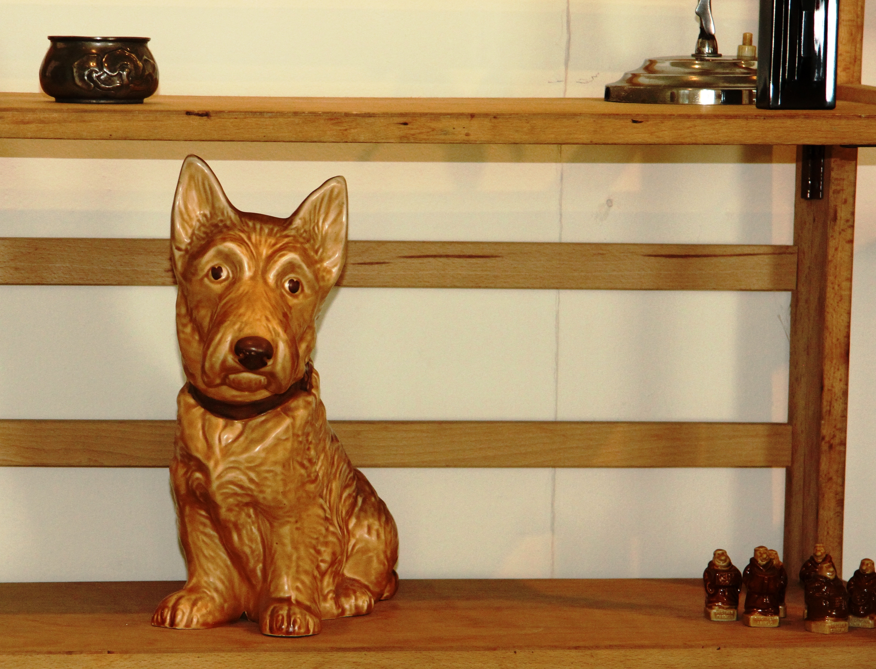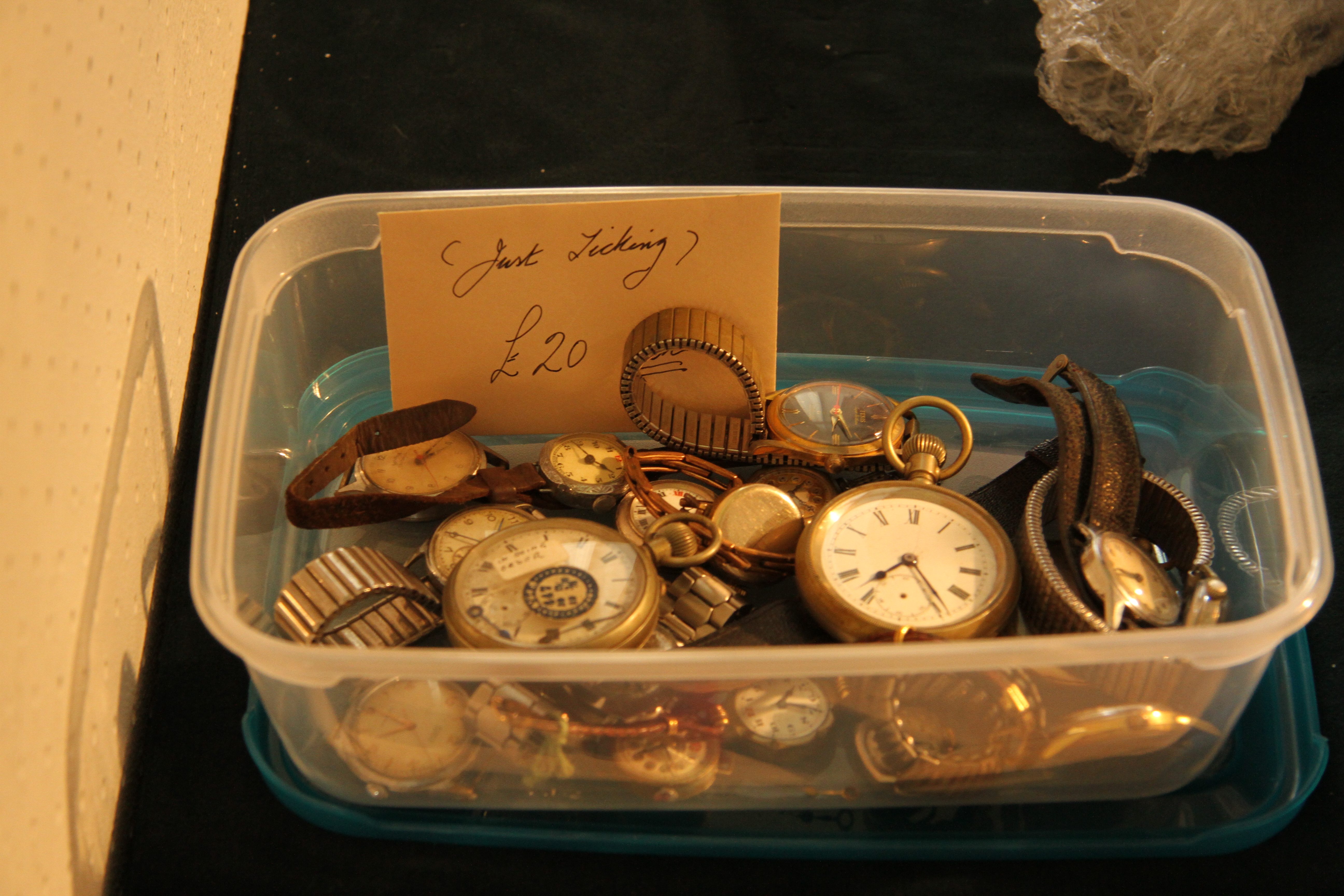 I took the photographs as I moved around and found images as they appeared.  Some of these recorded the people and some the stock on the units as both elements contributed to the overall scene and its ambience.  As a result I found subjects that I would otherwise have missed the significance of such as the box of clocks and watches with the sign, the doleful dog sat alone on the shelf and the dealer intently studying the carriage clock.