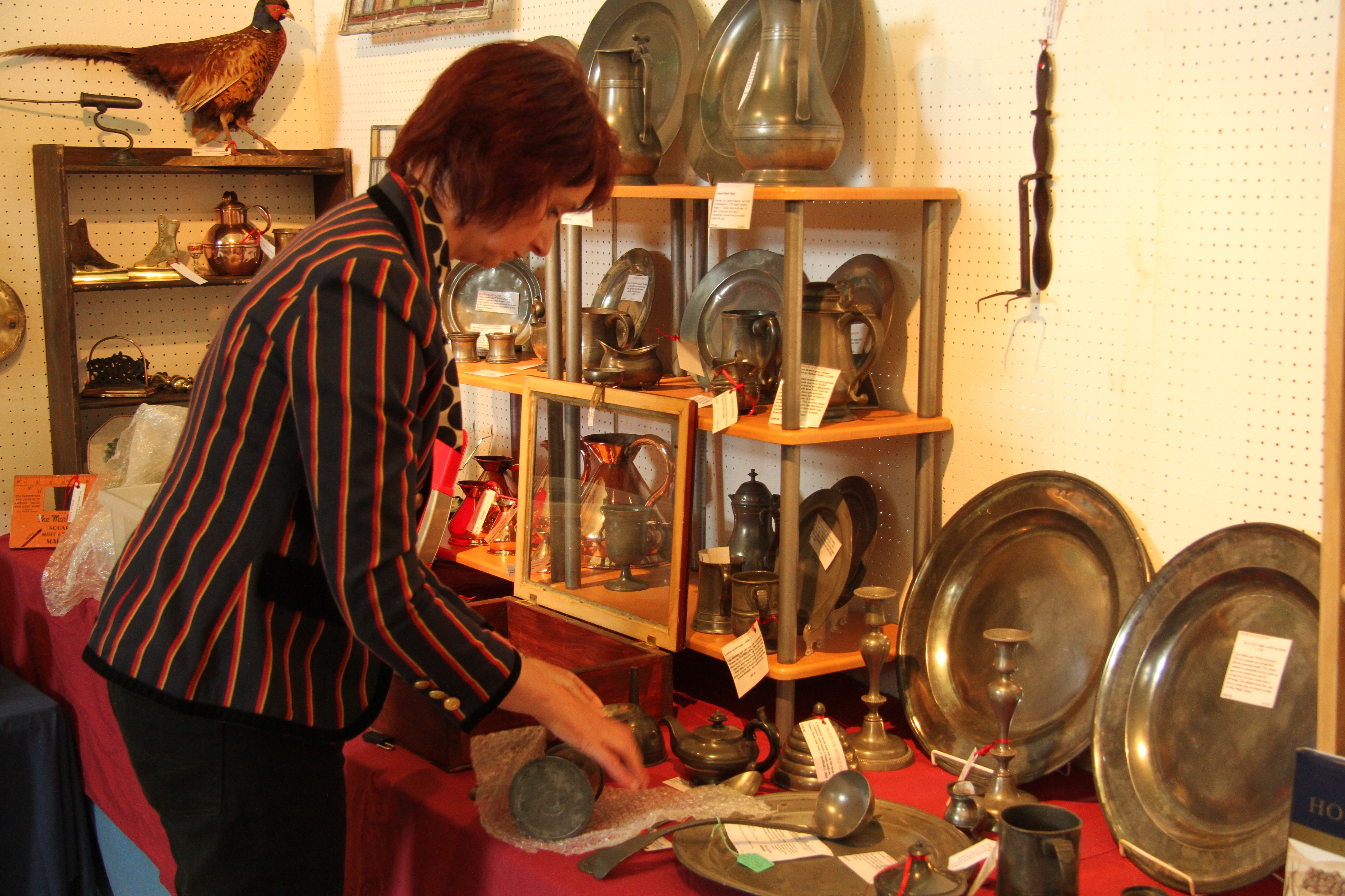 Moving across to the other side of the hall, my viewfinder found a dealer taking action and starting to pack up although the Fair still had time to run.  I focussed on her for a short while as she put a few things away.