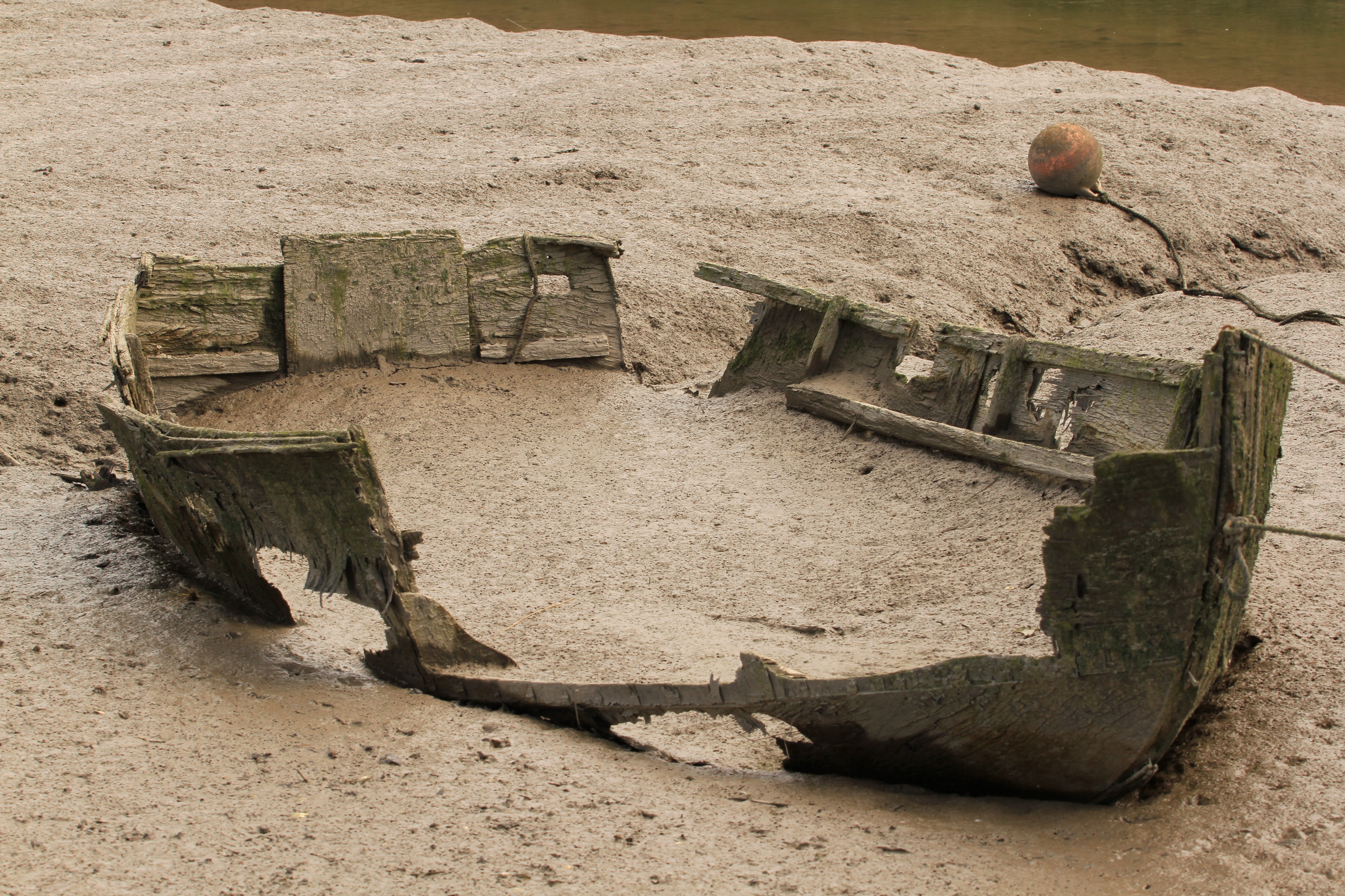 Again, there are a number of contrasts between these photographs, some obvious, some less so. The most obvious contrast is the immobility of the boat in the mud of the Taf estuary at Laugharne and the motion of the cyclist competing at the annual races held at New Quay in Ceredigion. Other contrasts include the monochrome palette of the derelict boat compared to the colour of the downhill racer on the fully operational bicycle , and the fact that the boat image has no human interest whereas the cyclist features strongly in the second image. Less obvious contrasts are the fact that both are modes of transport but one operates on water and the other on land, and that the boat is part buried in the earth whereas the bicycle is flying some distance above the earth.