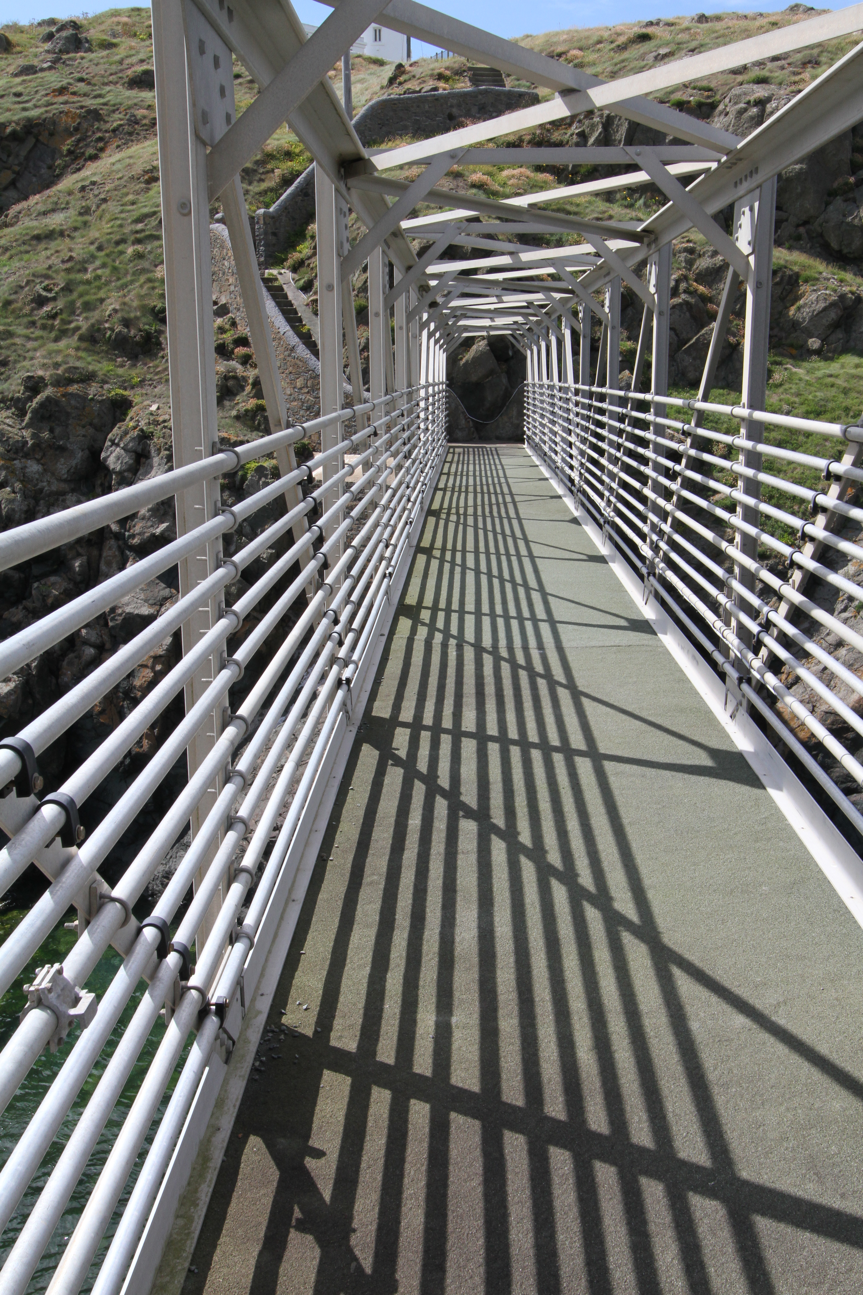 The first image was an obvious subject to choose as an example for the ‘straight’ category. It shows the ‘No Admittance’ bridge leading across to the Strumble Head lighthouse and depicts an interesting pattern of angular, straight lines. The meandering gulley on a muddy foreshore taken at low tide at Pembroke Dock equally was an obvious choice for the curved category. The two photographs, whilst they share a similar soft grey and silver palette, demonstrate contrast in a number of ways. The straight, angular lines of the bridge contrast markedly with the curving sinuosity of the gulley as do the hard and rigid materials of the bridge when compared with the soft, malleable mud banks of the gulley. A less obvious contrast is the fact that whereas the purpose of the bridge is to provide a passage over the water, the gulley serves to create a passage for the water.