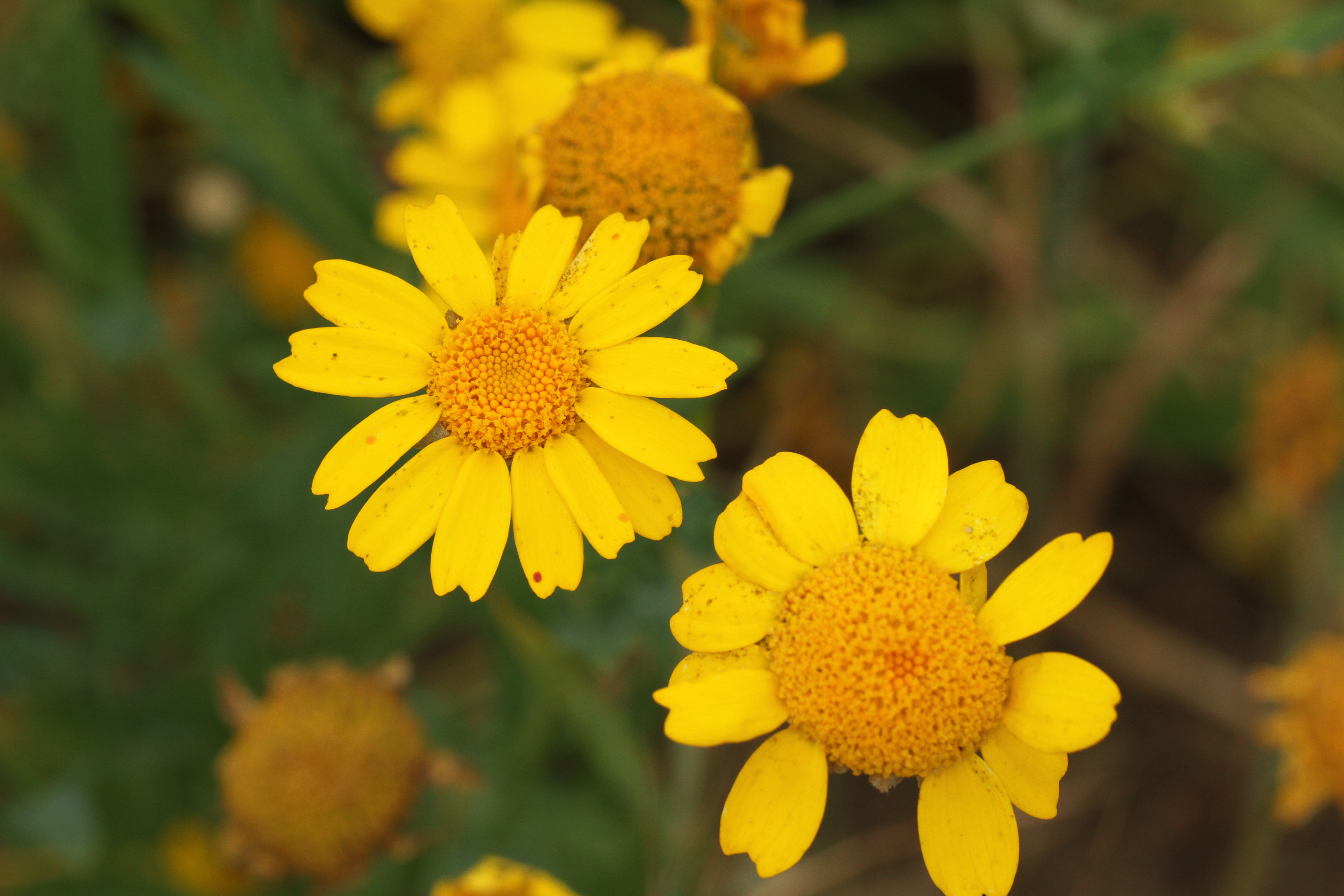 This view of a field of a flower crop under sown with a crop of barley taken with a wide angle lens near the coast at Abereiddi shows a mass of flowers stretching almost as far as the eye can see. The closer flowers can be seen as individual blooms although with little detail but as they become more distant they lose their individuality and merge to make a mass of yellow. The macro shot of a small group of the crop flowers on the other hand shows the detail and uniqueness of individual flowers. The shot of the few tells the viewer one story of what it is to be an individual flower, whilst the wide angle view shows the powerful effect of the flowers en masse.
