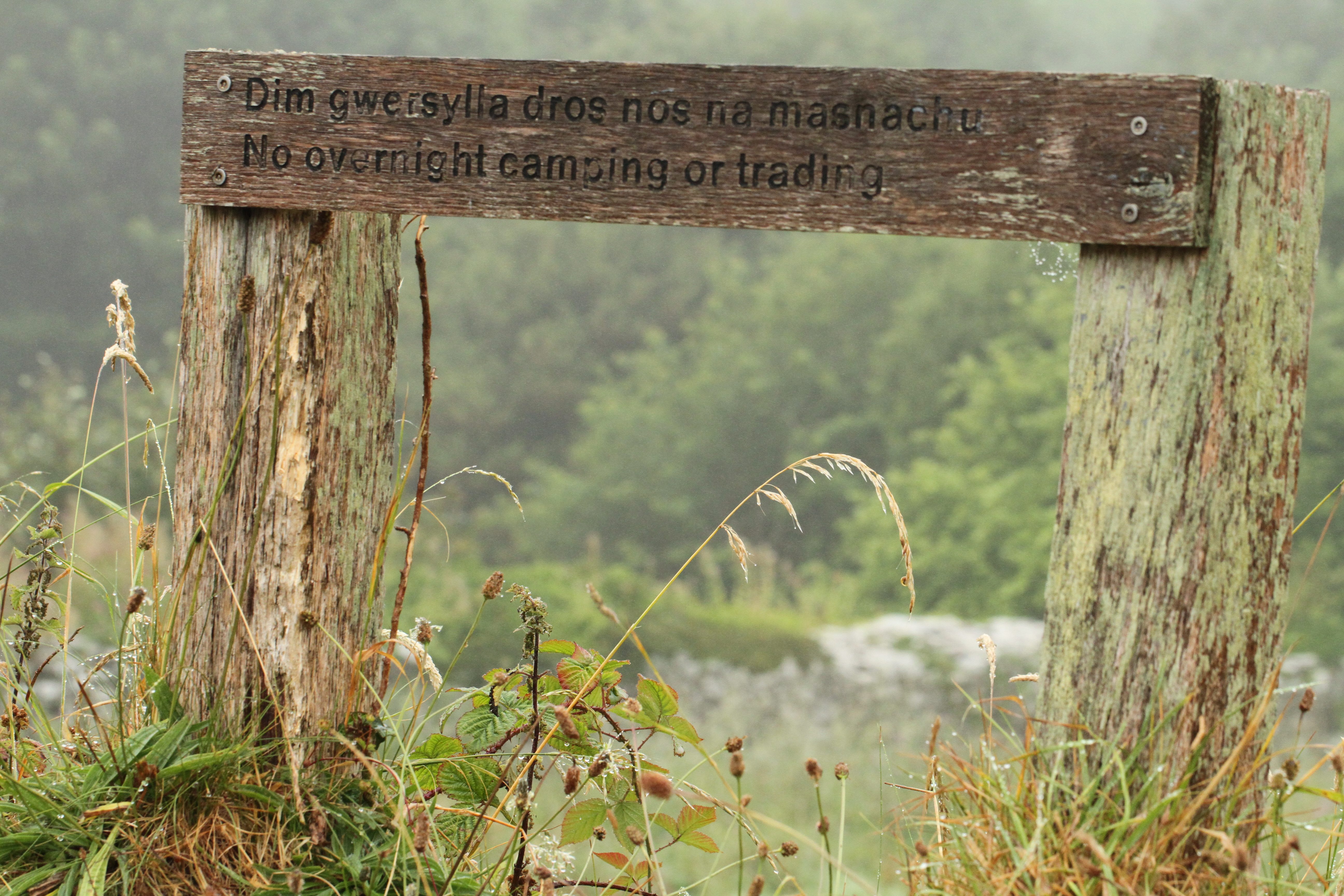 This sign adjacent to the car park at St Davids cathedral caught my eye when I was out on an early morning shoot. The early morning mist and the fact that I was using a telephoto lens helped to make the sign stand against the background. I think that what drew me to the subject was the fact that the sign created a frame with the light and delicate vegetation within contrasting with the heavy solidity of the wood uprights and cross piece. The horizontal element could dominate the scene if it were placed lower in the frame where it would form a base. Placing the high in the frame enables the