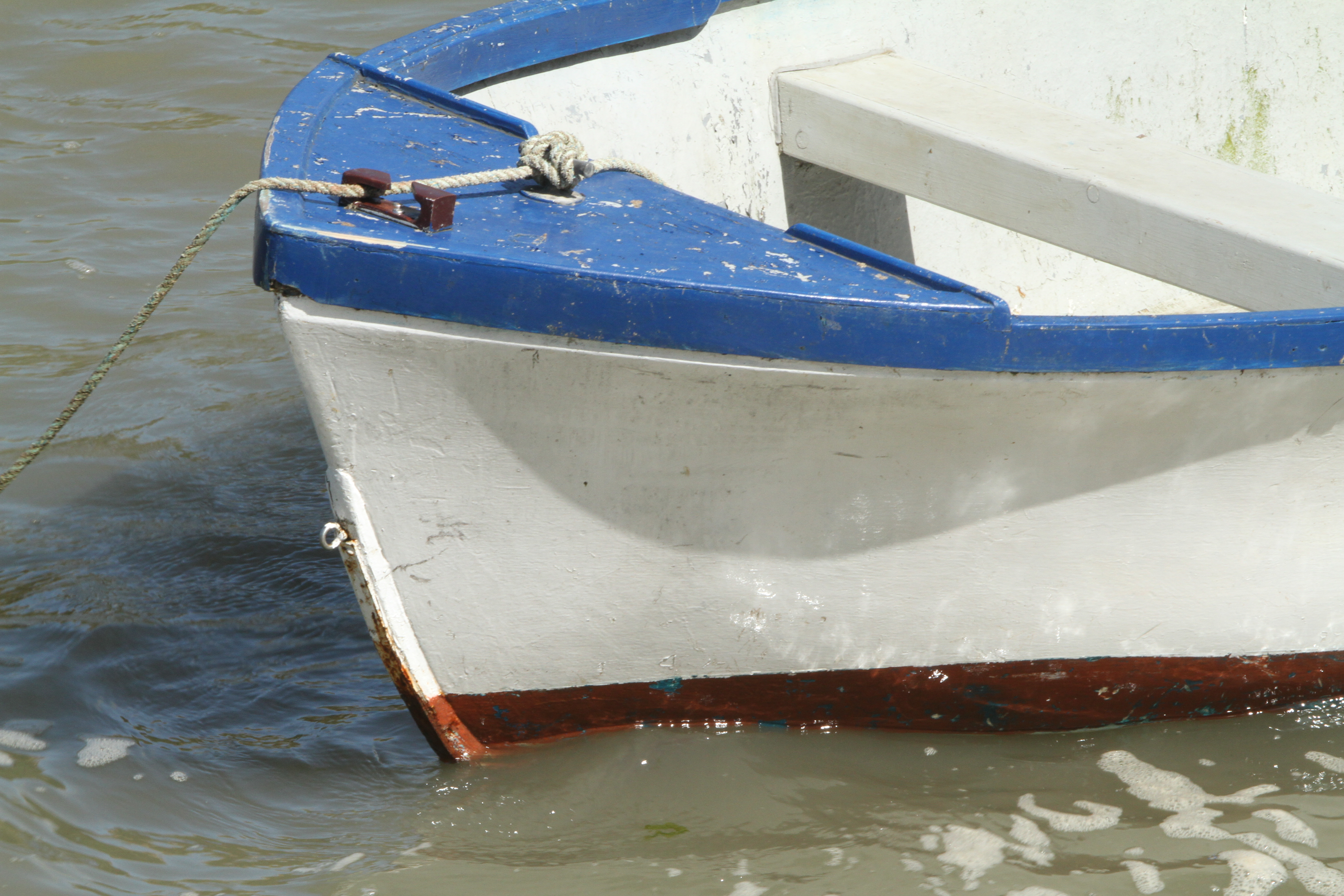 The curving lines of the boat itself and of the shadow were what immediately caught my attention in this subject, particularly as the effect was in part transitory. The shadow below the side of the bow only formed a large curve like this when the boat was at a certain angle to the sun, and as it rocked, the angle to the sun and hence the shape and size of the shadow changed constantly. For the purposes of my image and its appeal, it was essential that I caught it when the curve and size were at its maximum. It was only later that I noticed the strong diagonal lines of the seat plank and the board in the bows. Not only do these diagonals bring excellent contrast with the softer curves but the tone and colour of the shadow on the side of the seat matches the shadow on the side of the boat and adds to the patterns created by the various lines within the image.