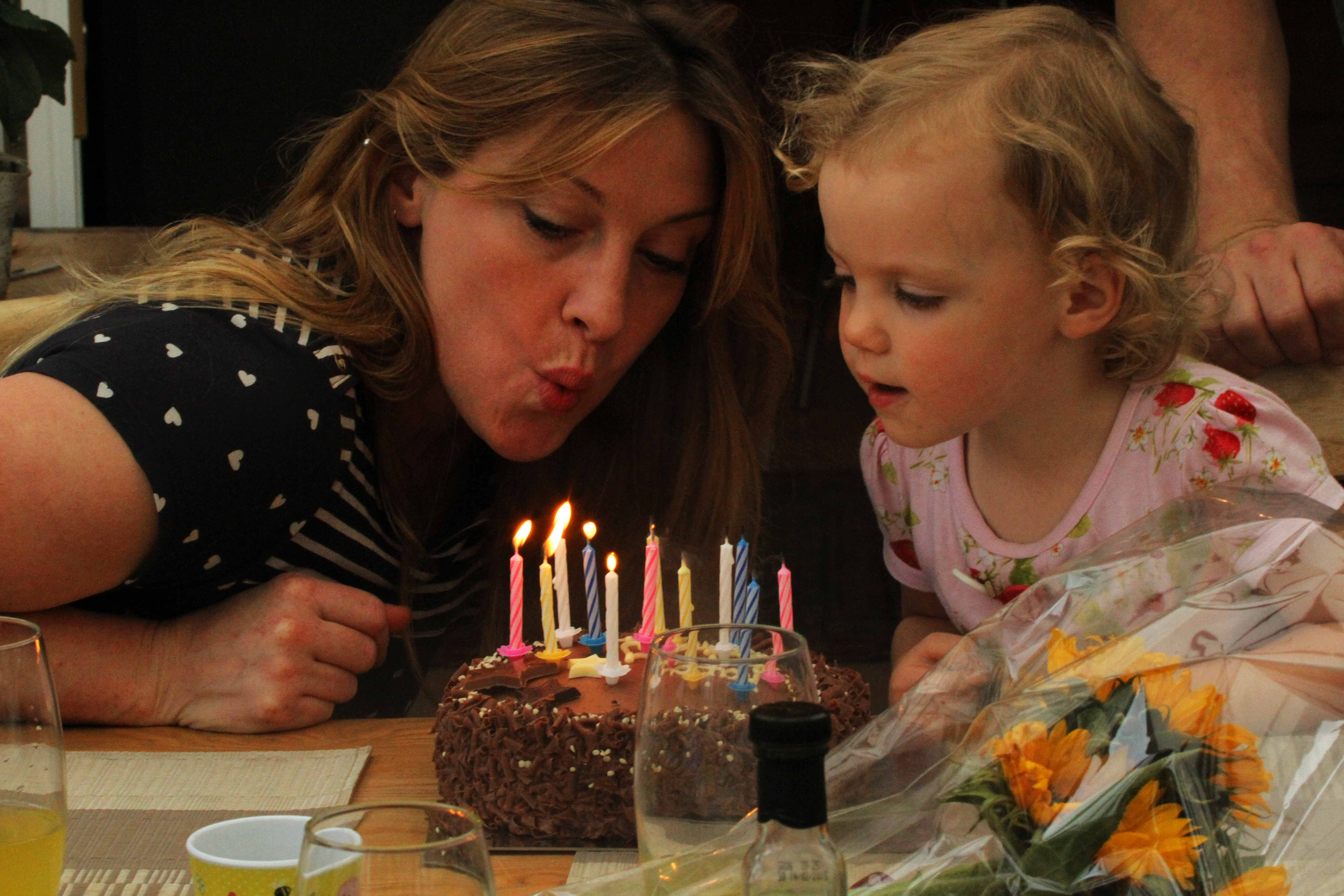 This recent shot of my daughter and granddaughter blowing out the candles on a birthday cake demonstrates the concept of implied lines through their line of sight and the implied continuation of Anna’s right arm all of which focus attention on the central subject of the cake and its candles. This was an unplanned and spontaneous photograph as I didn’t know it was about to happen. As a result I was unable to remove the unsightly objects in the foreground or move to a position which might have better framed the action. Zooming in did not work as it cropped the subjects too tightly. Not a work of art, but it does capture the moment!