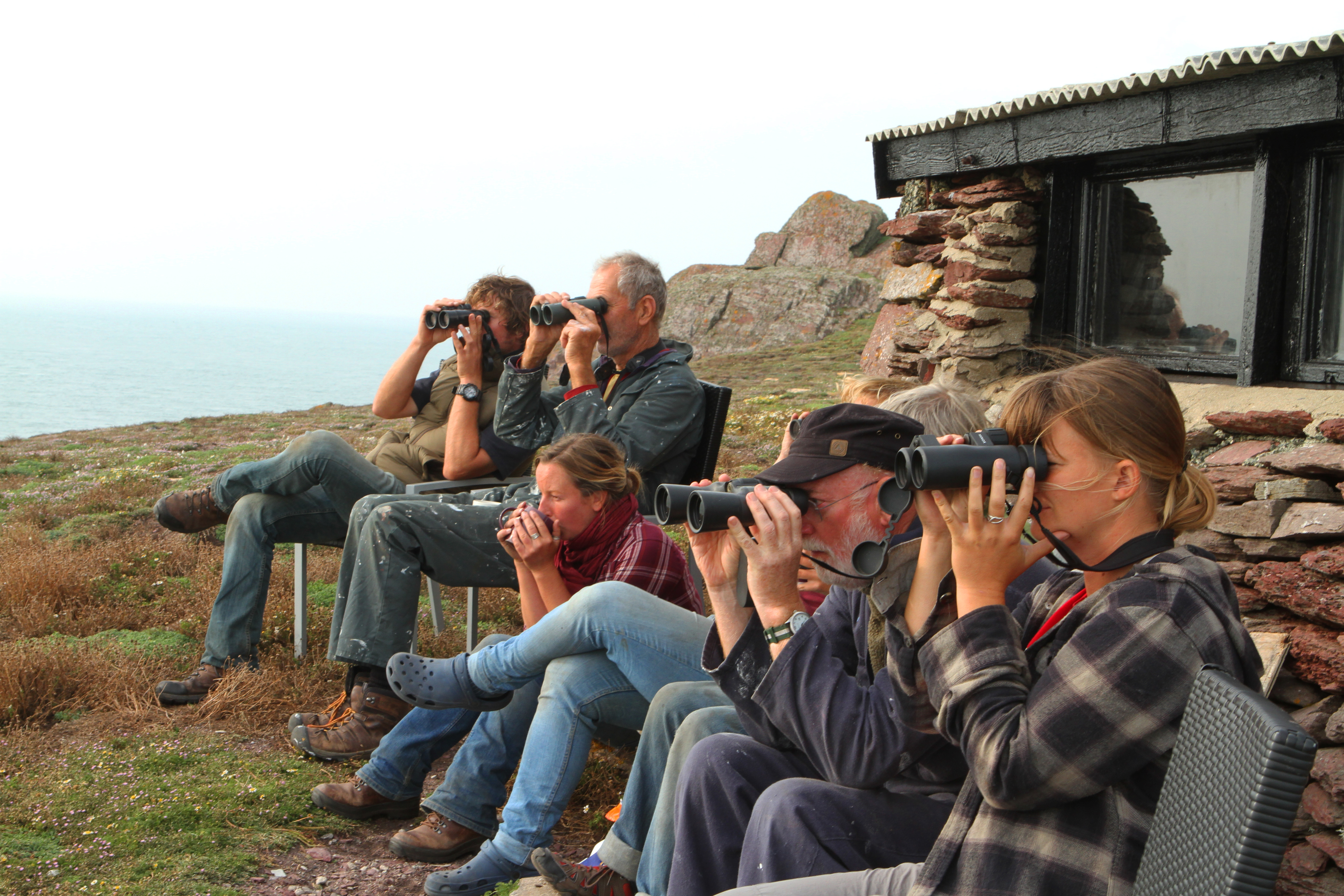 Whilst on a recent work party week on Skokholm Island off the Pembrokeshire coast I looked out for possible shots to use in my course exercises and this seemed to me to be an obvious candidate for the Implied Lines – Eye Lines example. Everyone was entirely focussed on identifying and counting sea birds during a coffee break and the line of sight out to sea to the left of the frame is enhanced by the direction of the eyes, faces and binoculars. Even the lines of the feet are pointing in the same direction as is the implied continuation of the line of the roof of the shed / look out hide. The result is a very directional image which begs the question in the mind of the viewer “What are they looking at?” Of course, the image leaves that question open which heightens the sense of interest and mystery!