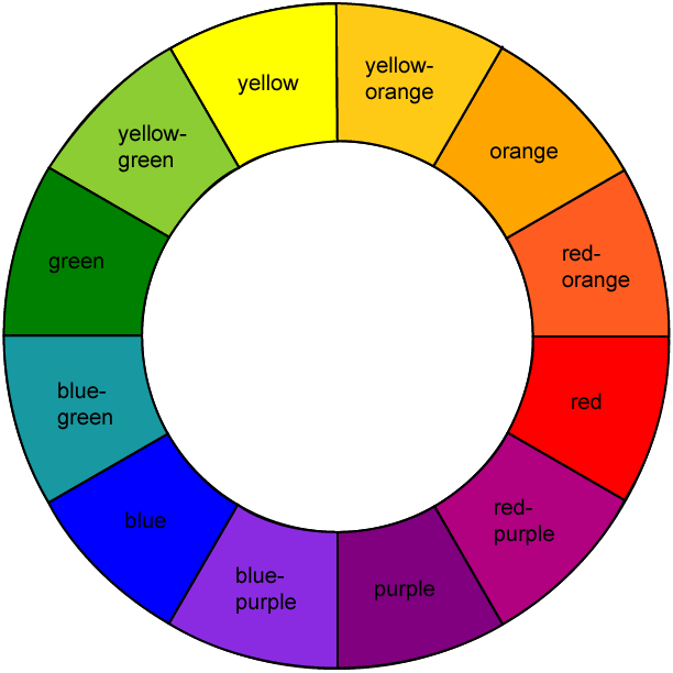 I have included below an image of the colour circle showing the primary, secondary and intermediary colours as a reminder and as a reference point for comparing the various colours in the following photographs.