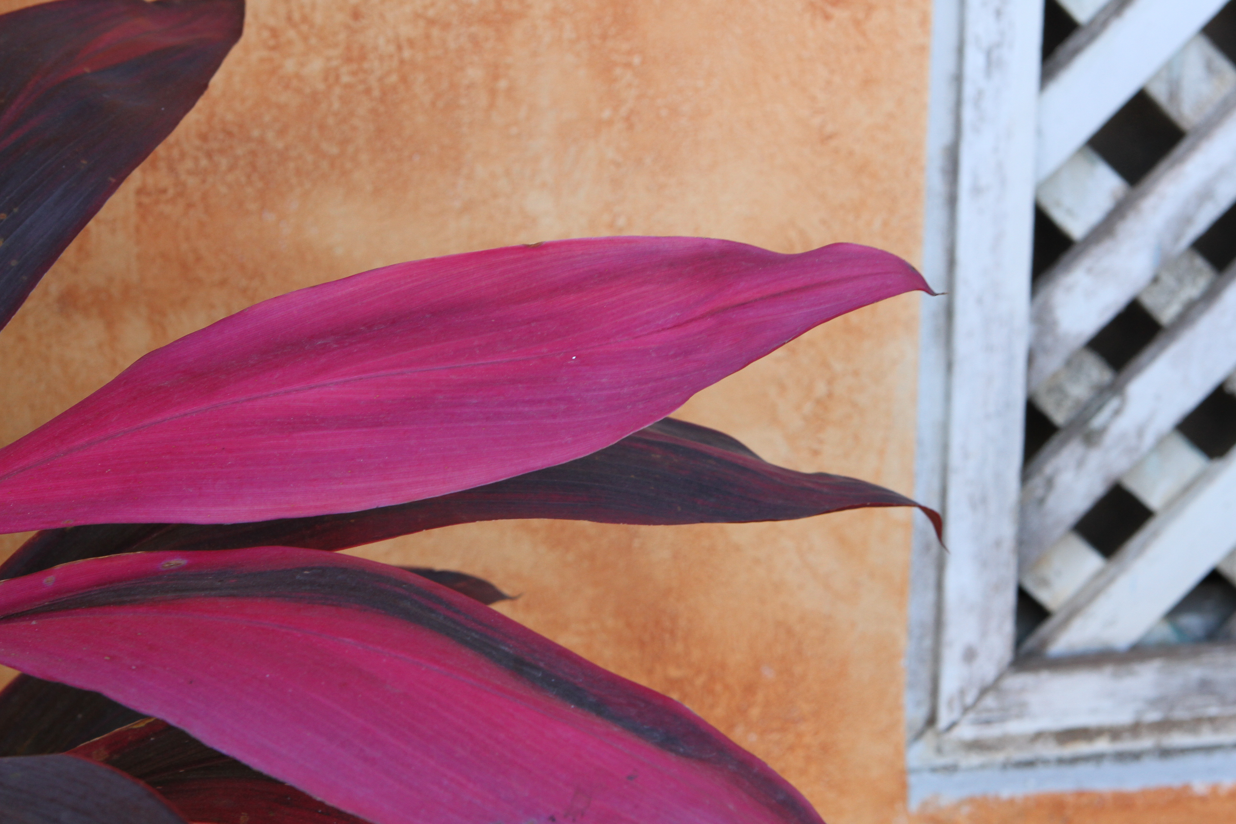 The purple of this vegetation against the orange wall immediately caught my eye but there was little scope for framing the image without including other distracting elements. After some experimentation I decided that the framing in this image worked best, the inclusion of the slatted window adding interest without detracting from the effect of the colour combination because of its neutral colour. The purple hue here is towards the red rather than the blue end of the range putting it closer to the orange on the colour wheel which means that it stands out less against the orange wall than if it had been towards the blue end of the range.