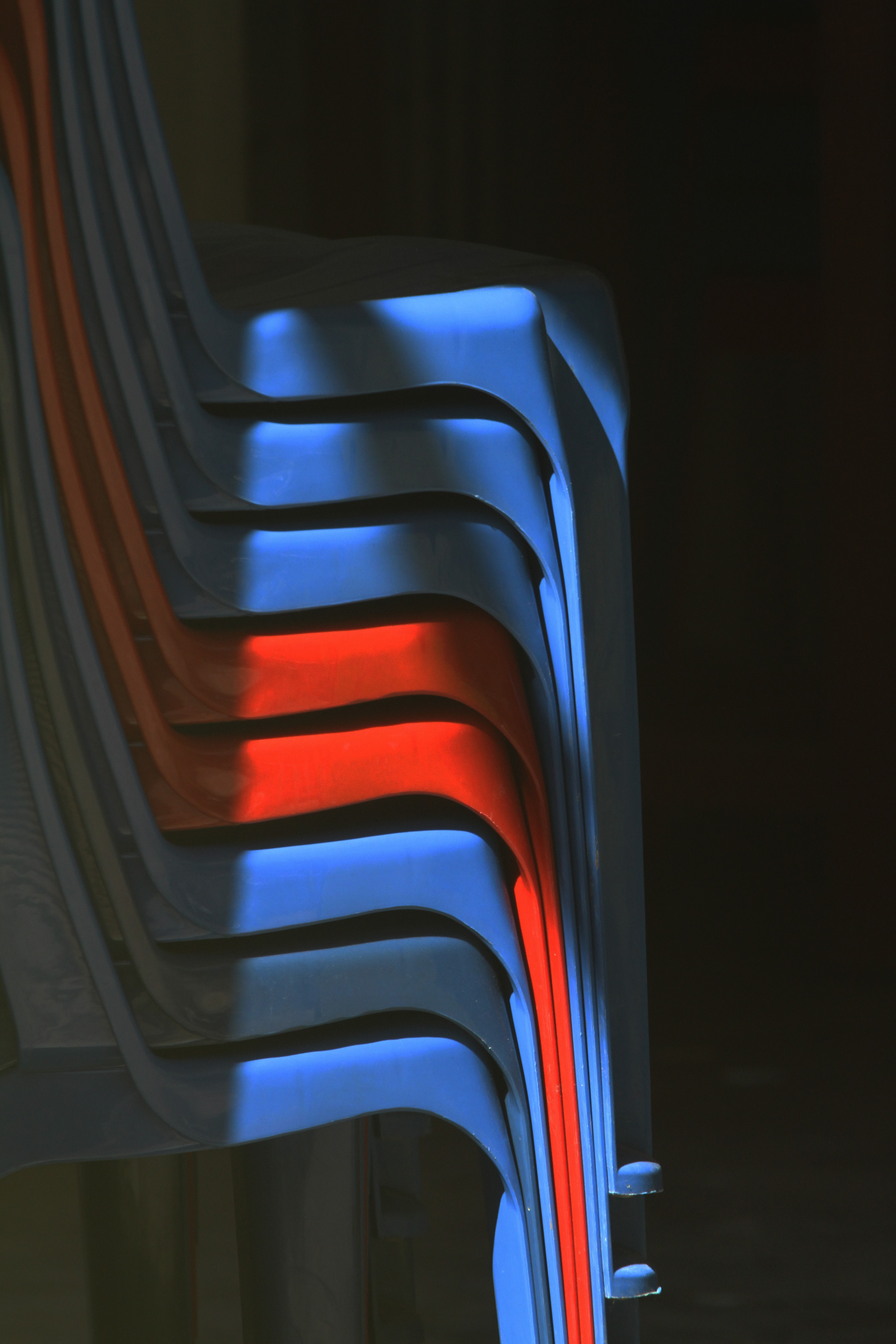 1. STACKED CHAIRS – RED AND BLUE