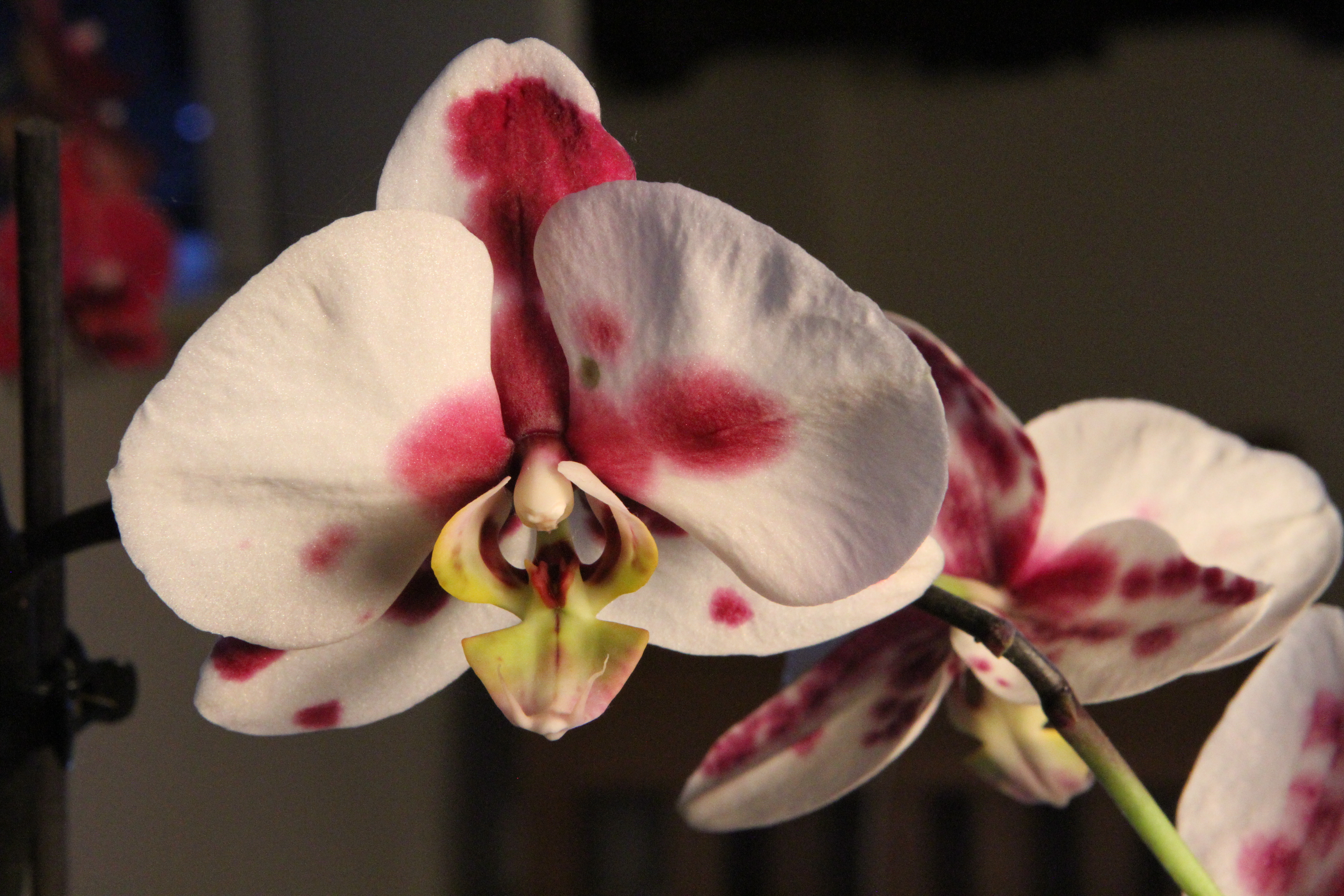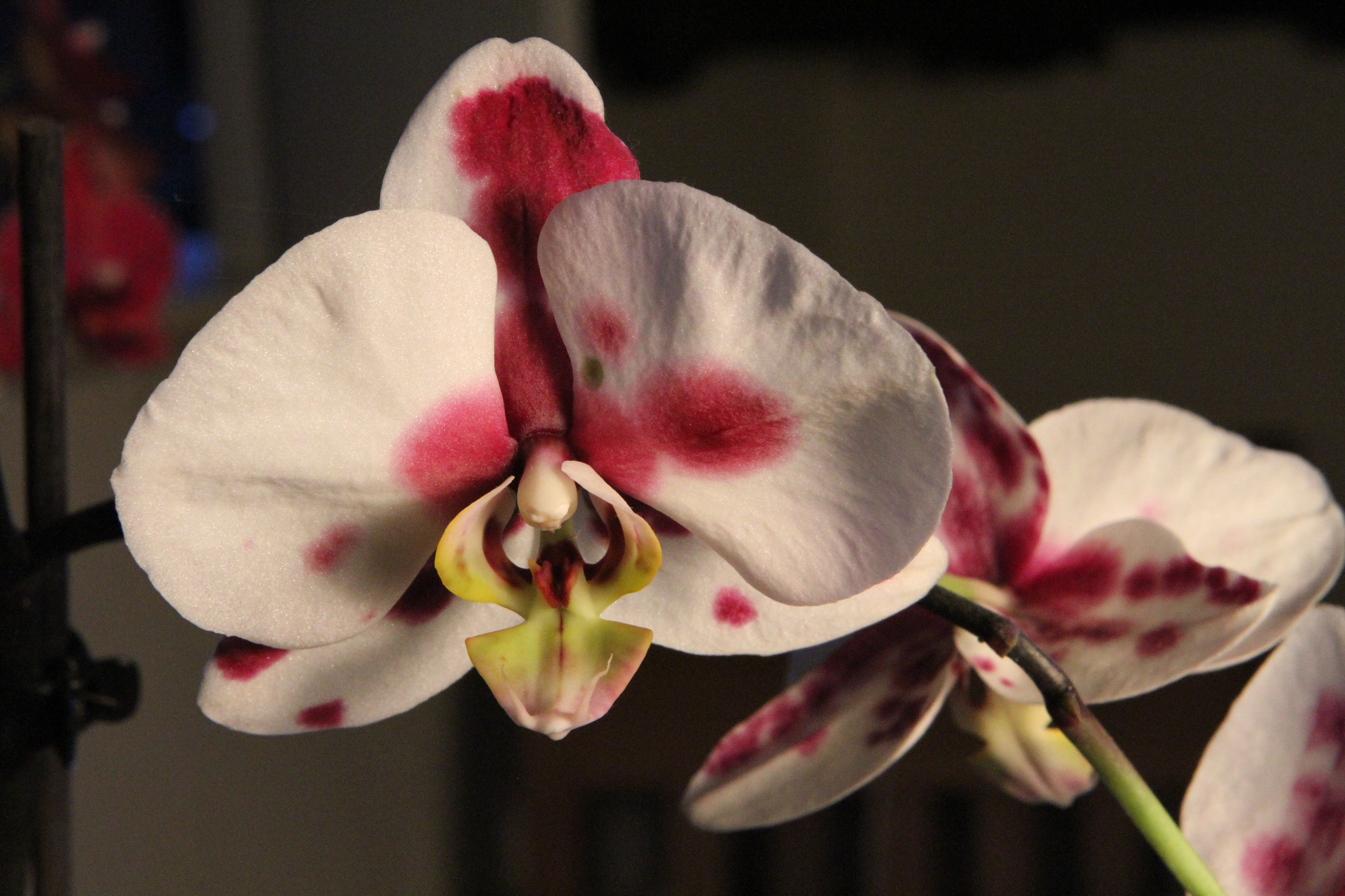 As a subject, I chose the light coloured flower of an orchid and used a tungsten spotlight as a light source. I mounted the camera fitted with a 24 – 70 mm zoom lens on a tripod and set the White Balance to ‘tungsten’. I then took 3 photographs, one with a naked light source, one with a single layer of diffusing material in front of the light source and one with two layers. The resulting images are reproduced below.