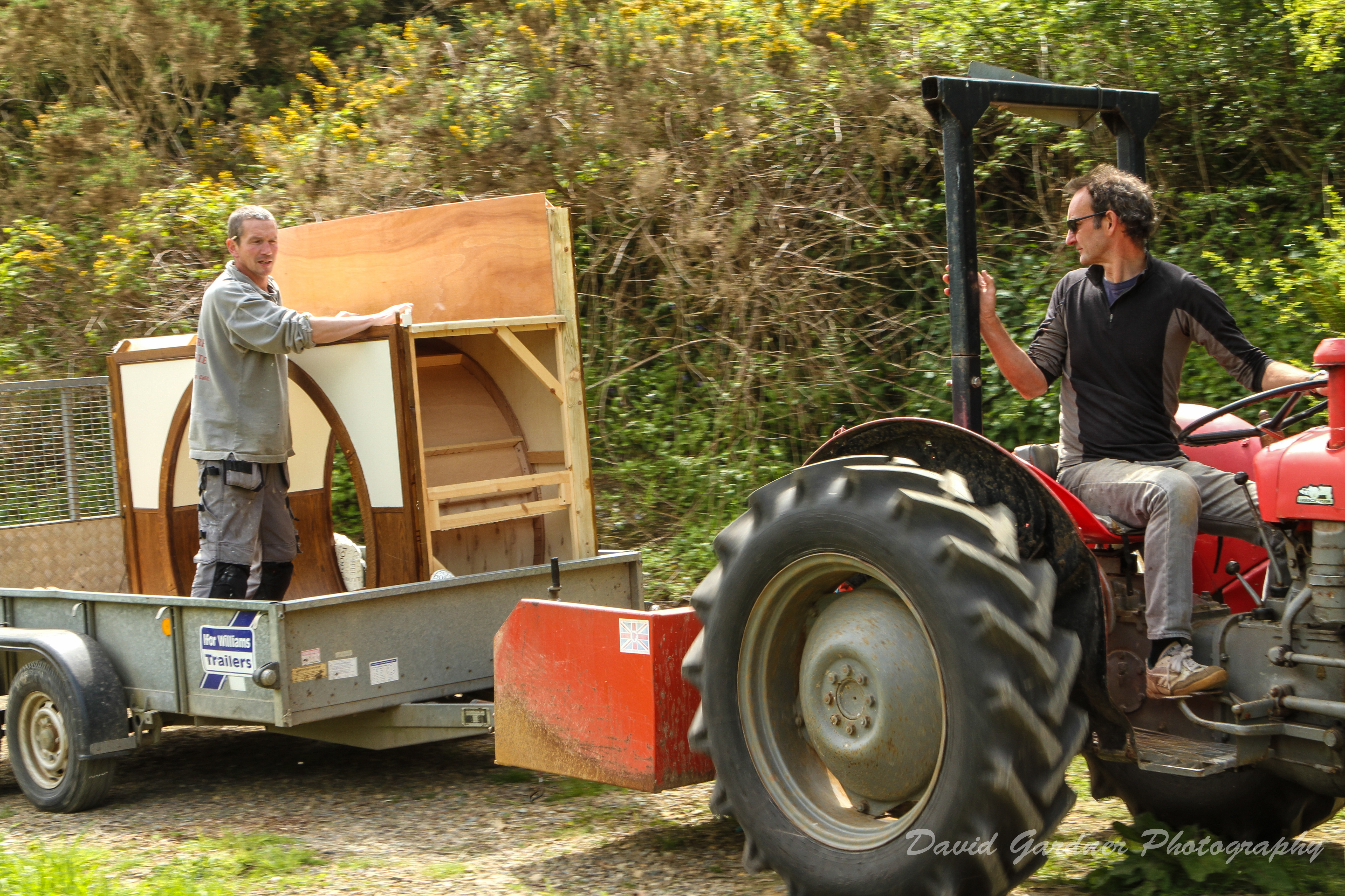 The time has come for the many components of the structure to be transported from the workshop to their final location at the far end of the campsite. This is not a time to drop or knock them or the work would have to be done again!