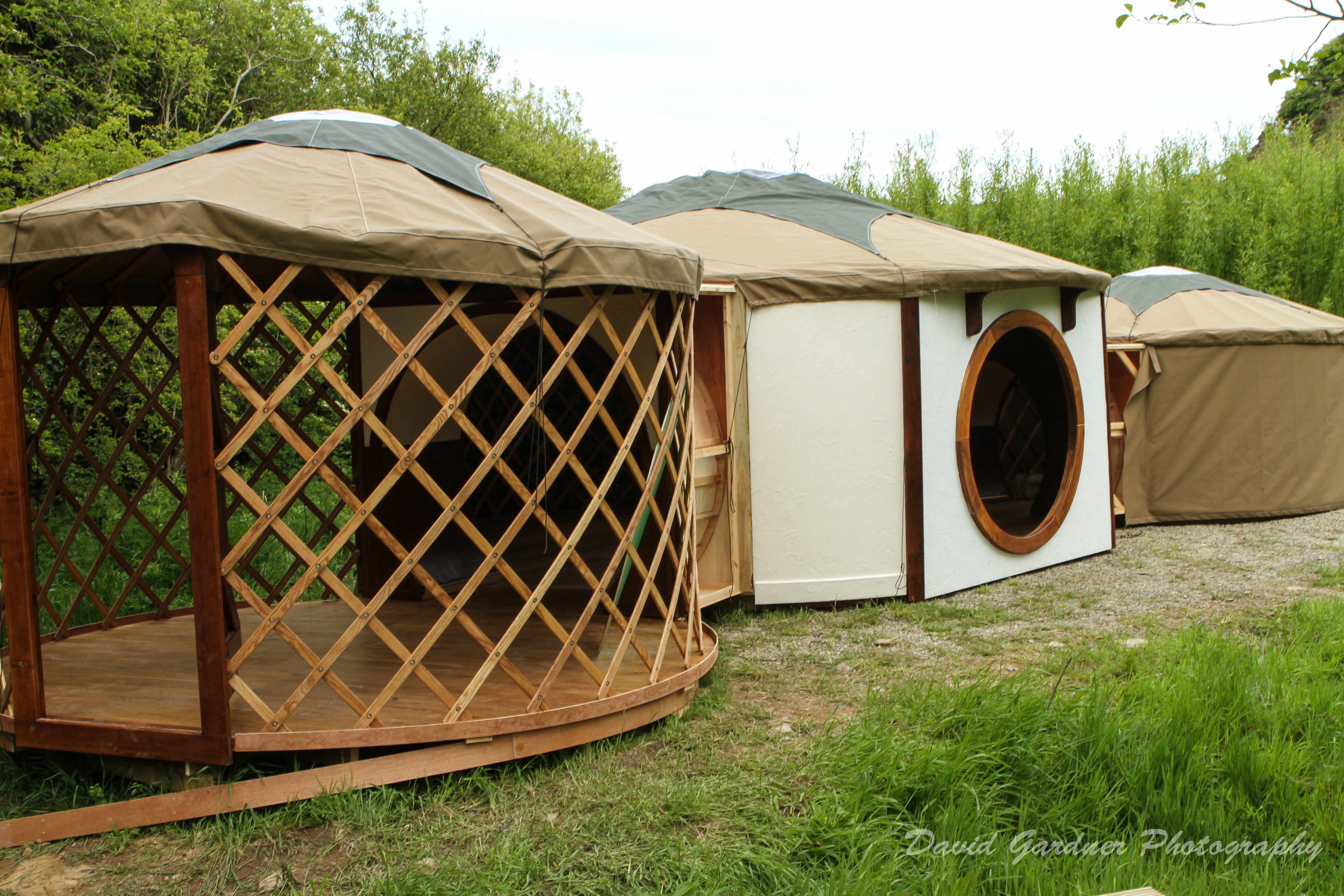 The subject that I chose was the construction of a unique 3 compartment yurt structure designed and built by my partner’s brother-in-law, Kevin, for use on his woodland campsite. The design was inspired by ‘Bag End’, Bilbo Baggins’ home in the Tolkien ‘Hobbit’ story. Family and friends assisted with the preparation and the construction of the triple yurt and it was completed just in time for the first guests’ arrival. The construction took many weeks as it involved making all the components from raw materials and involved a great deal of trial and error as there was no prototype to go by.